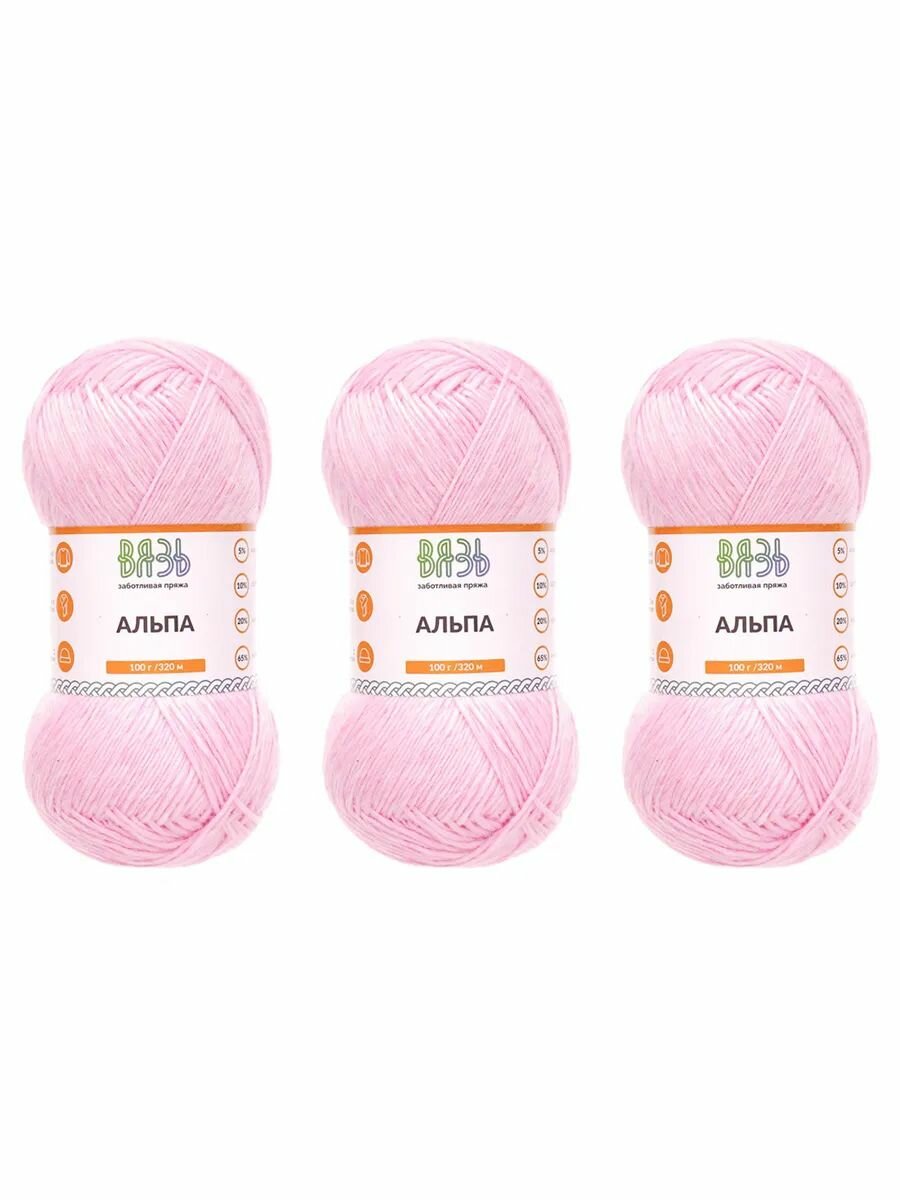 Купить Пряжа для вязания Вязь 'Альпа' 100г, 320м (5% альпака, 10% шерсть, 20% нейлон, 65% акрил) (06 розовый), 3 мотка