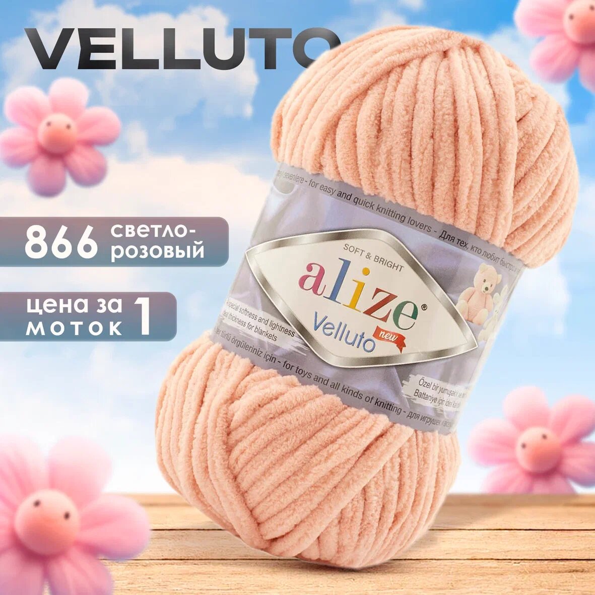 СохранитьПряжа Alize Velluto 1 моток, цвет 866 св. розовый интересное: