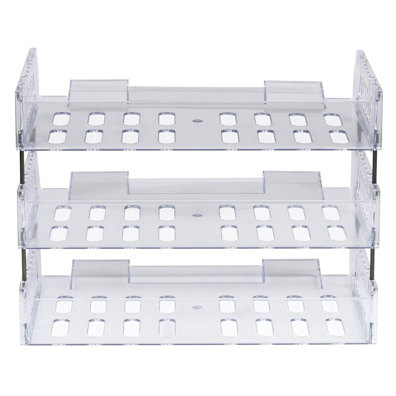Лоток для бумаг горизонтальный СТАММ Сити, набор 3шт., на мет. стержнях, широкая загрузка, прозрачный ( Артикул 324163 )
