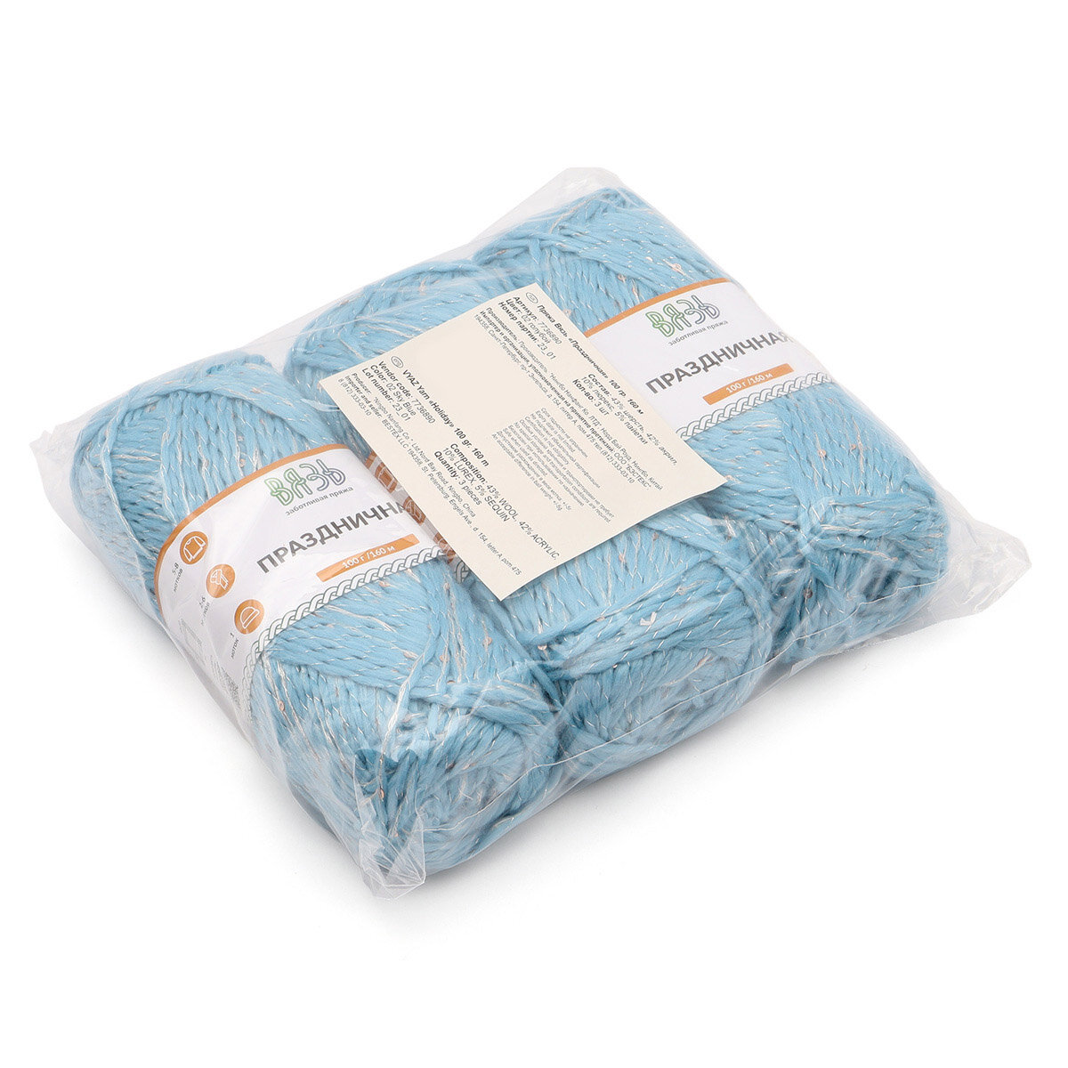 Купить Пряжа для вязания Вязь 'Праздничная' 100г, 160м (43% шерсть, 42% акрил, 10% люрекс, 5% пайетки) (02 голубой), 3 мотка