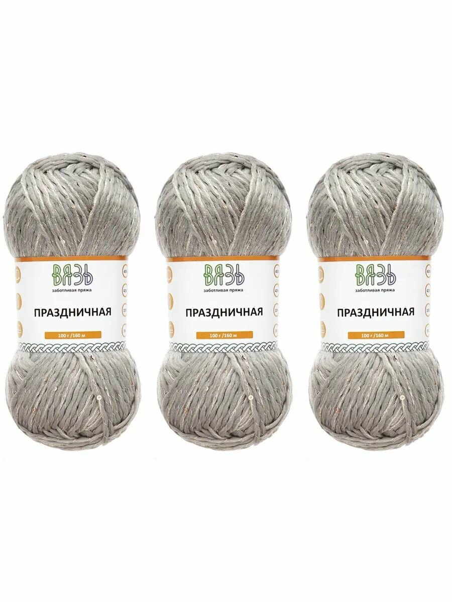 Купить Пряжа для вязания Вязь 'Праздничная' 100г, 160м (43% шерсть, 42% акрил, 10% люрекс, 5% пайетки) (08 серебро), 3 мотка
