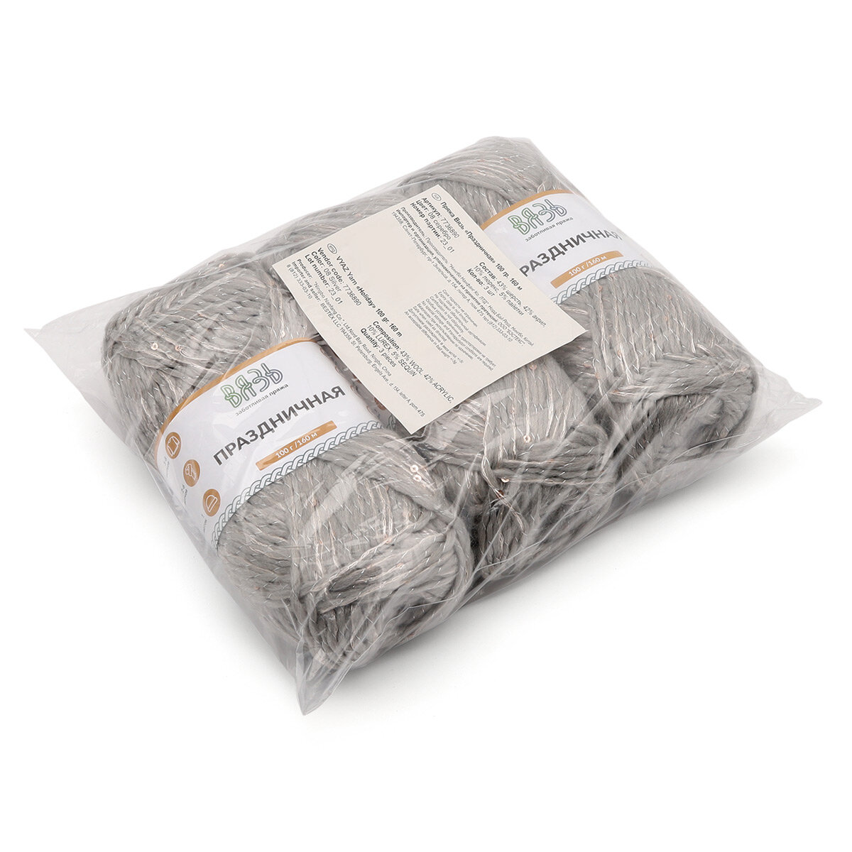 Ниже Вы можете прочитать отзывы на Пряжа для вязания Вязь 'Праздничная' 100г, 160м (43% шерсть, 42% акрил, 10% люрекс, 5% пайетки) (08 серебро), 3 мотка, ознакомится с подробными характеристиками, посмотреть интересные обзоры и фотографии на Пряжа для вязания Вязь 'Праздничная' 100г, 160м (43% шерсть, 42% акрил, 10% люрекс, 5% пайетки) (08 серебро), 3 мотка.