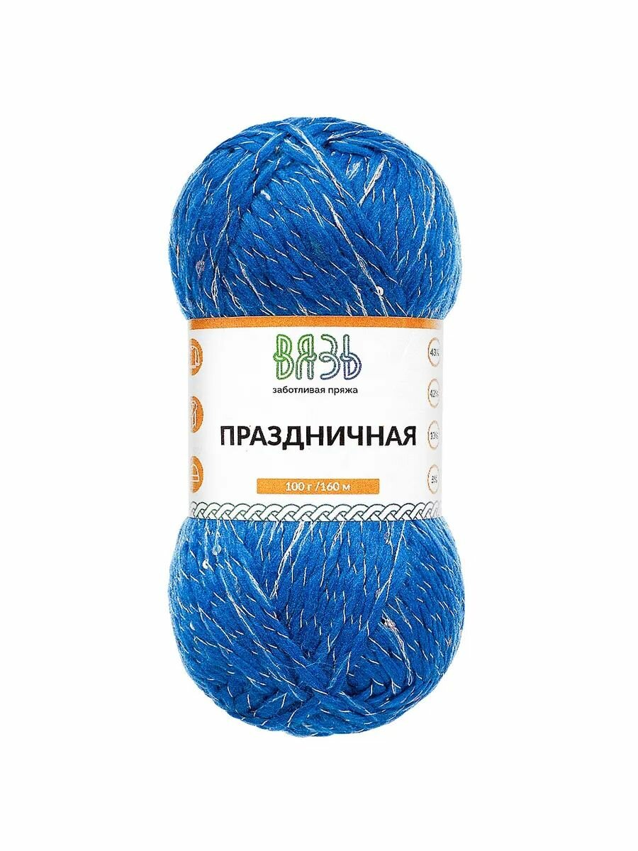 Купить Пряжа для вязания Вязь 'Праздничная' 100г, 160м (43% шерсть, 42% акрил, 10% люрекс, 5% пайетки) (06 синий), 3 мотка