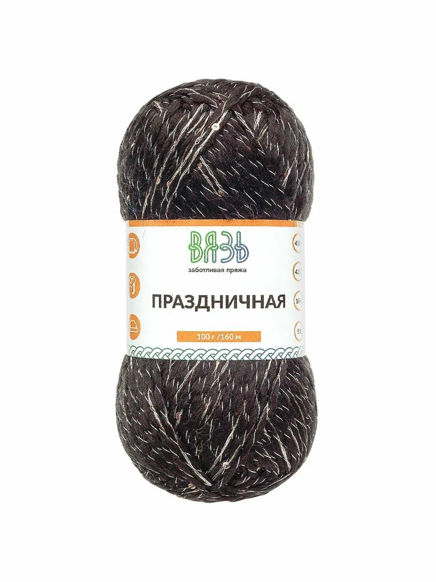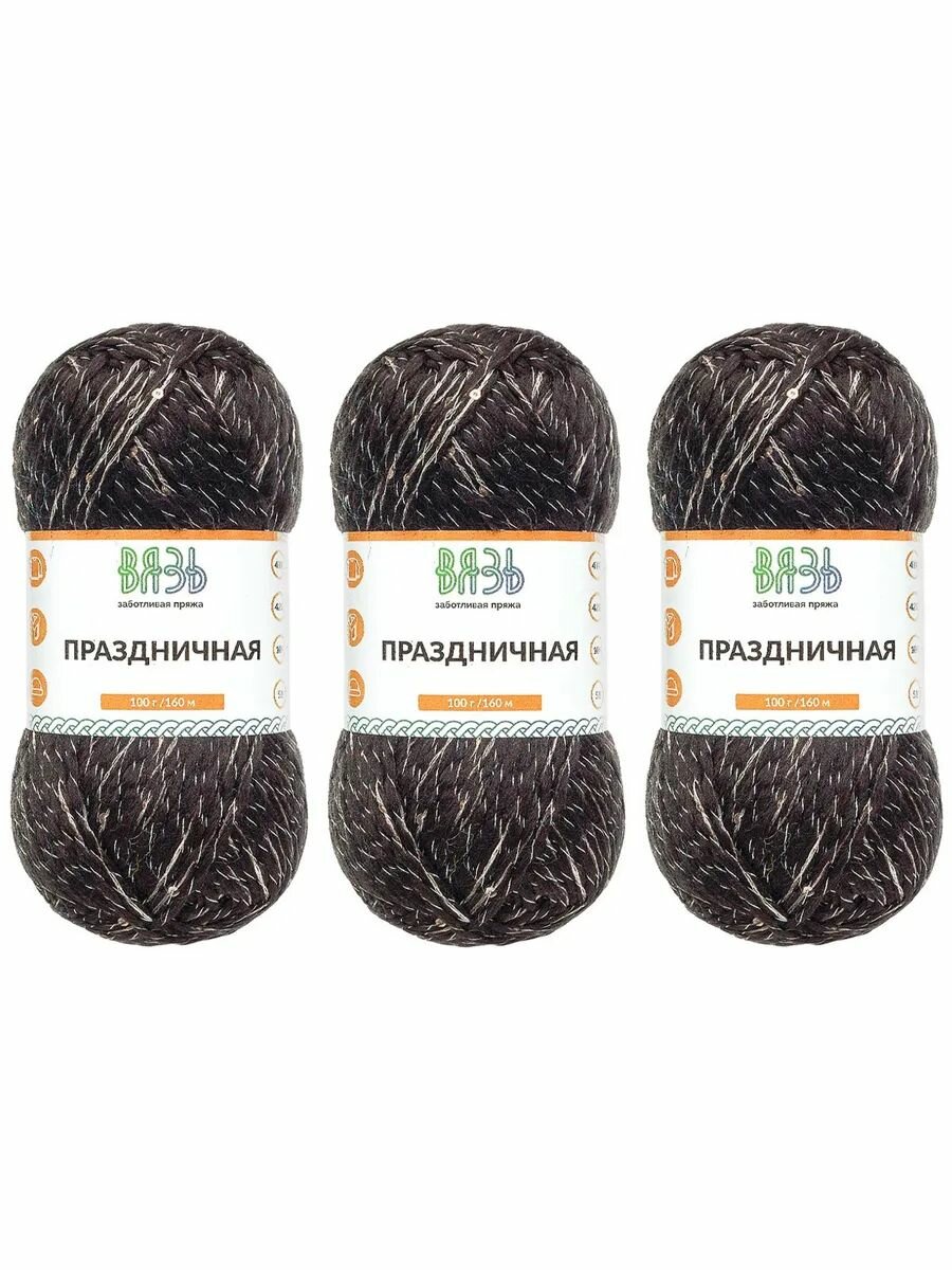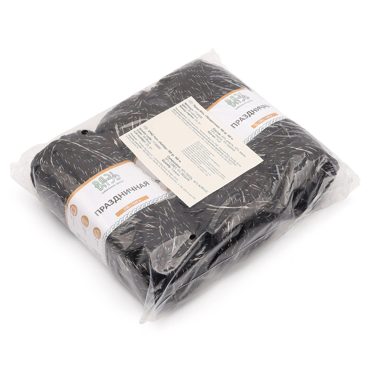 Купить Пряжа для вязания Вязь 'Праздничная' 100г, 160м (43% шерсть, 42% акрил, 10% люрекс, 5% пайетки) (09 черный), 3 мотка