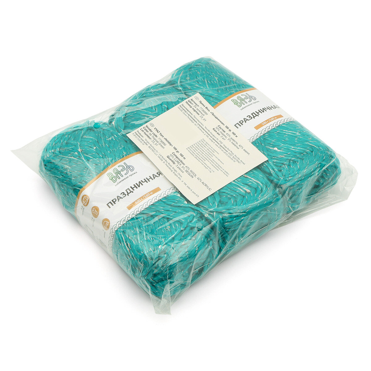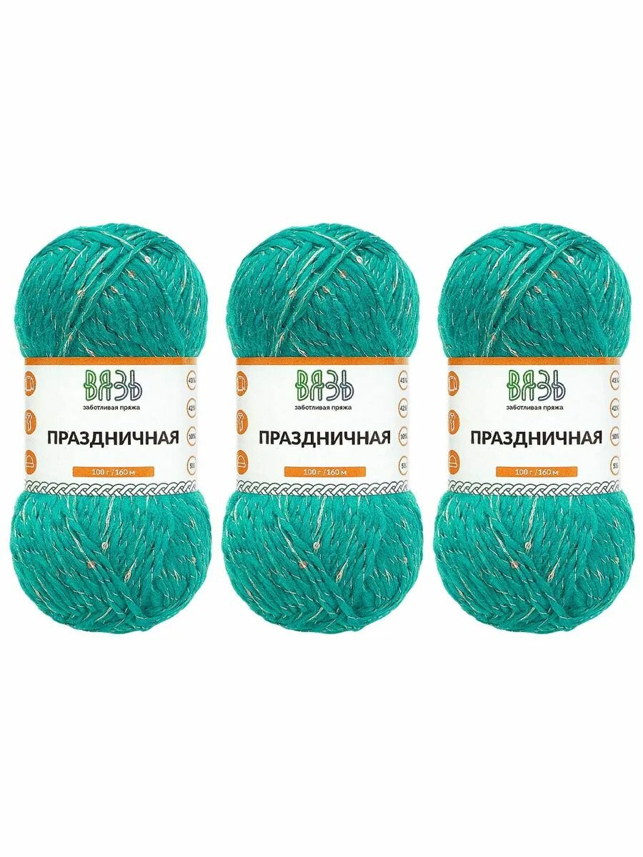 Купить Пряжа для вязания Вязь 'Праздничная' 100г, 160м (43% шерсть, 42% акрил, 10% люрекс, 5% пайетки) (04 зеленый), 3 мотка