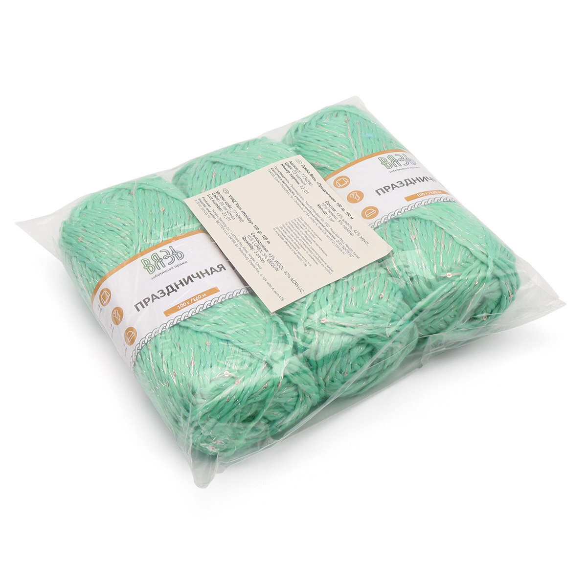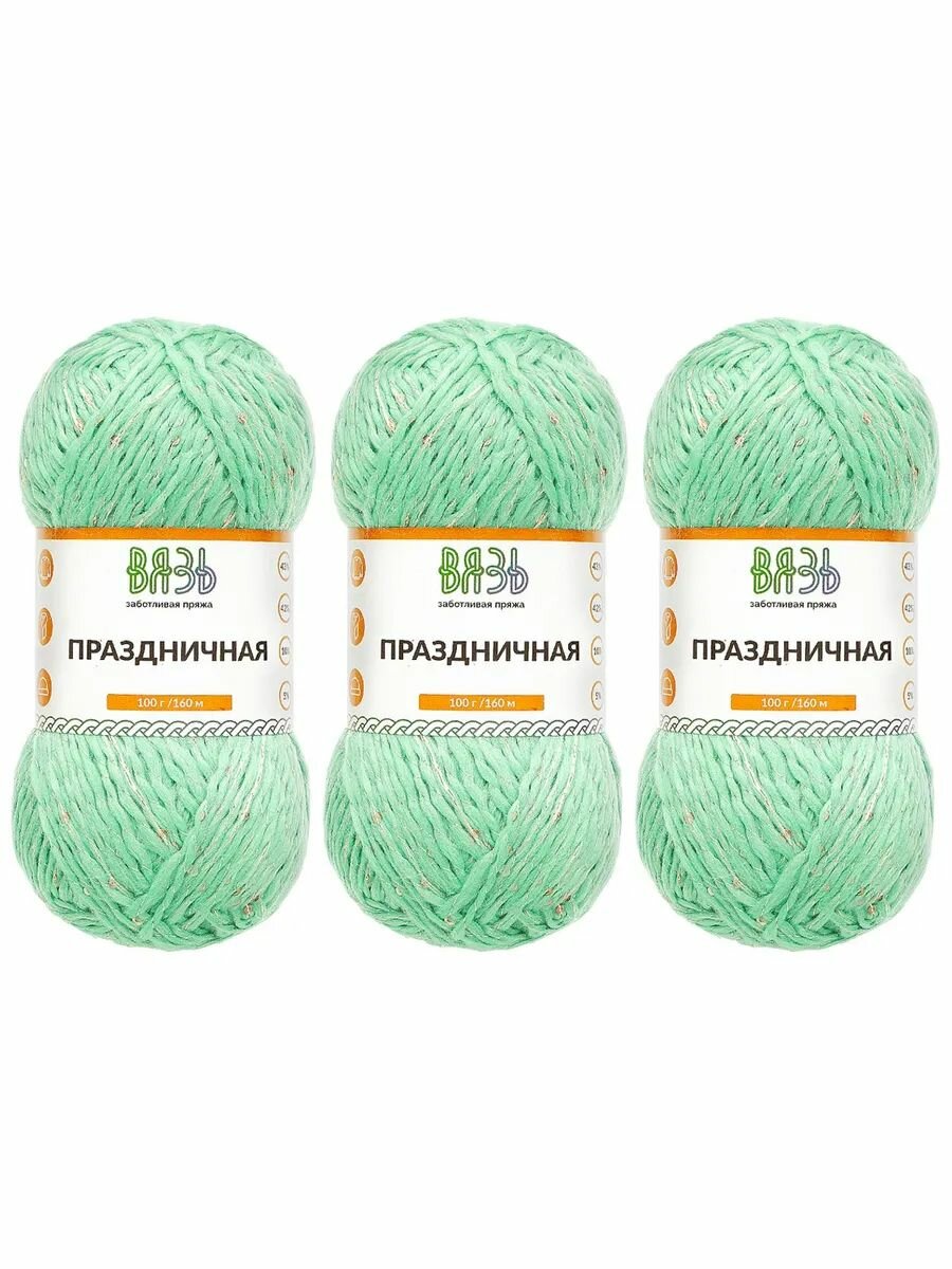 Купить Пряжа для вязания Вязь 'Праздничная' 100г, 160м (43% шерсть, 42% акрил, 10% люрекс, 5% пайетки) (03 мятный), 3 мотка