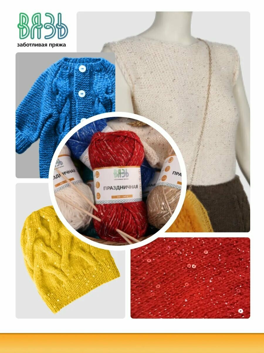 СохранитьПряжа для вязания Вязь 'Праздничная' 100г, 160м (43% шерсть, 42% акрил, 10% люрекс, 5% пайетки) (11 желтый), 3 мотка интересное: