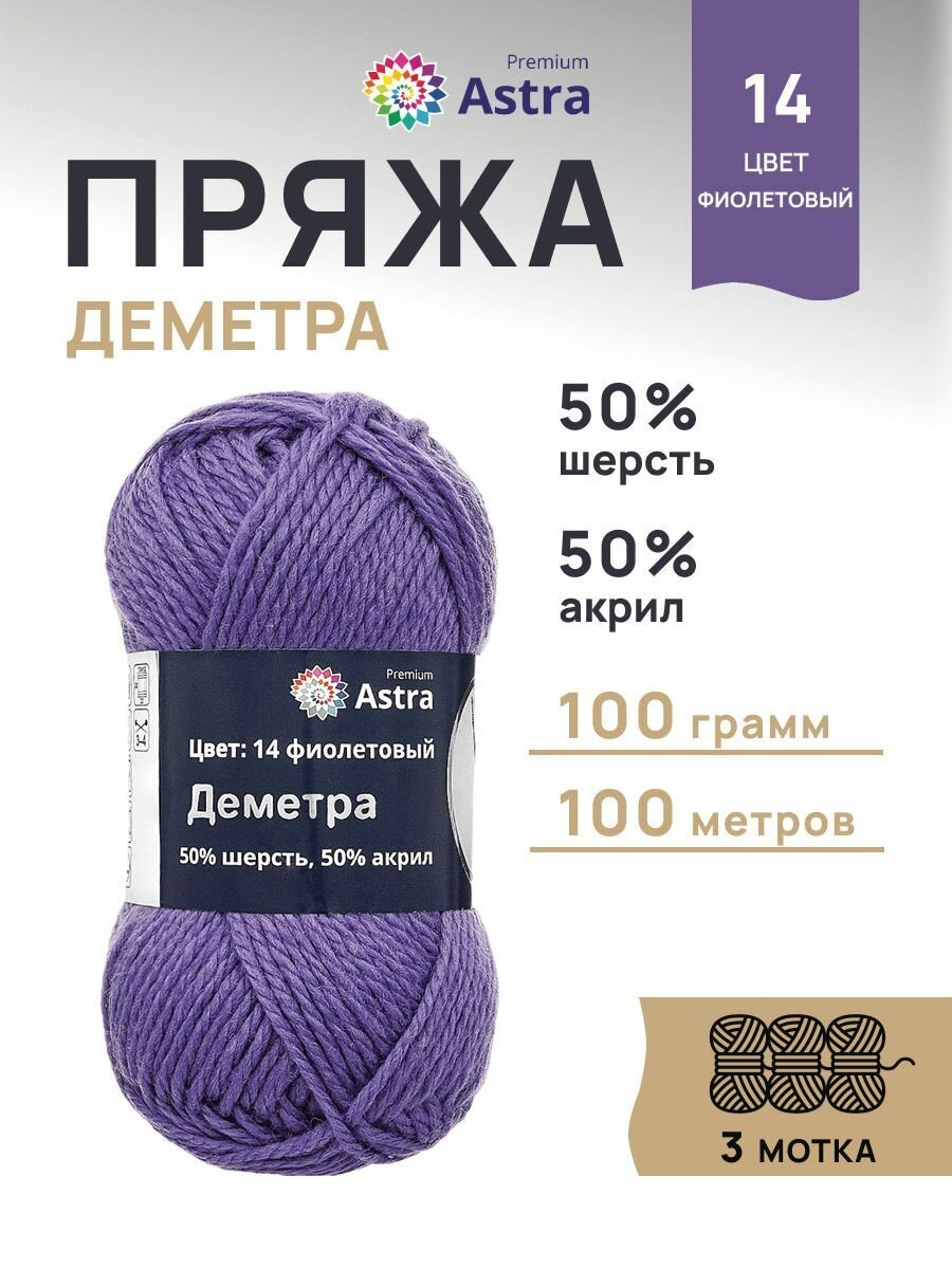 Купить Пряжа для вязания Astra Premium 'Деметра' 100г, 100м (50% шерсть, 50% акрил) (14 фиолетовый), 3 мотка