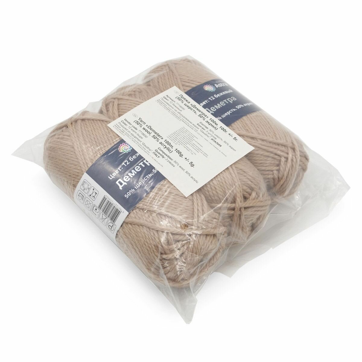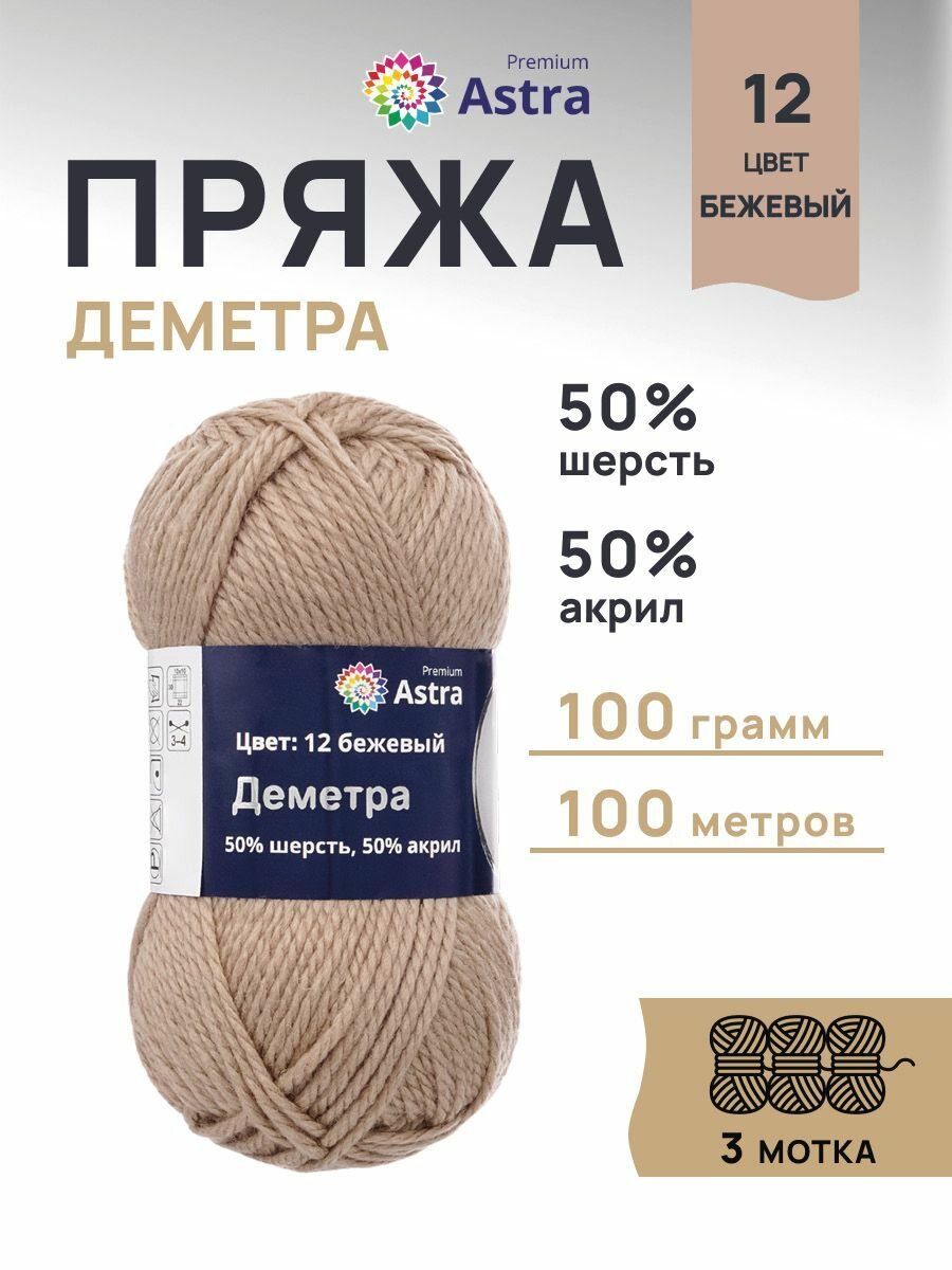 Купить Пряжа для вязания Astra Premium 'Деметра' 100г, 100м (50% шерсть, 50% акрил) (12 бежевый), 3 мотка