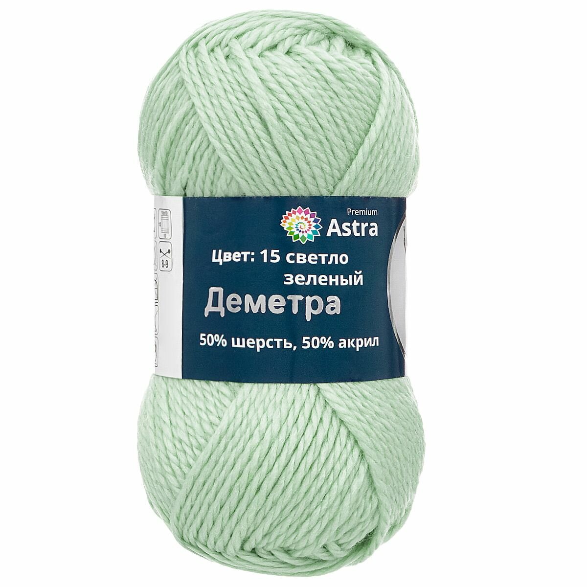 Купить Пряжа для вязания Astra Premium 'Деметра' 100г, 100м (50% шерсть, 50% акрил) (15 светло-зеленый), 3 мотка