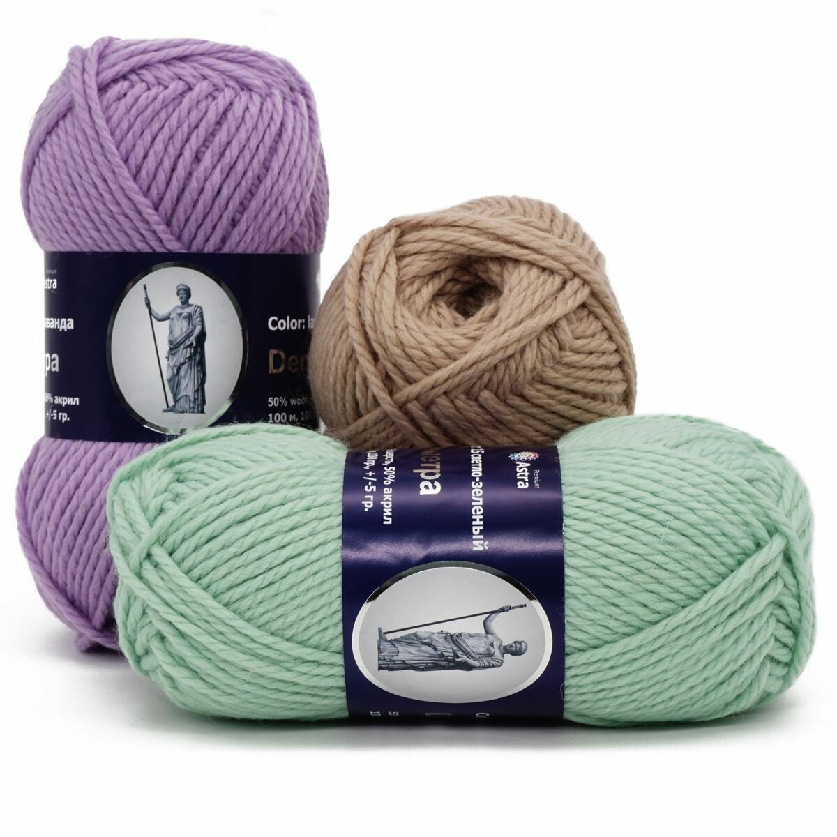 Пряжа для вязания Astra Premium 'Деметра' 100г, 100м (50% шерсть, 50% акрил) (09 зеленый), 3 мотка