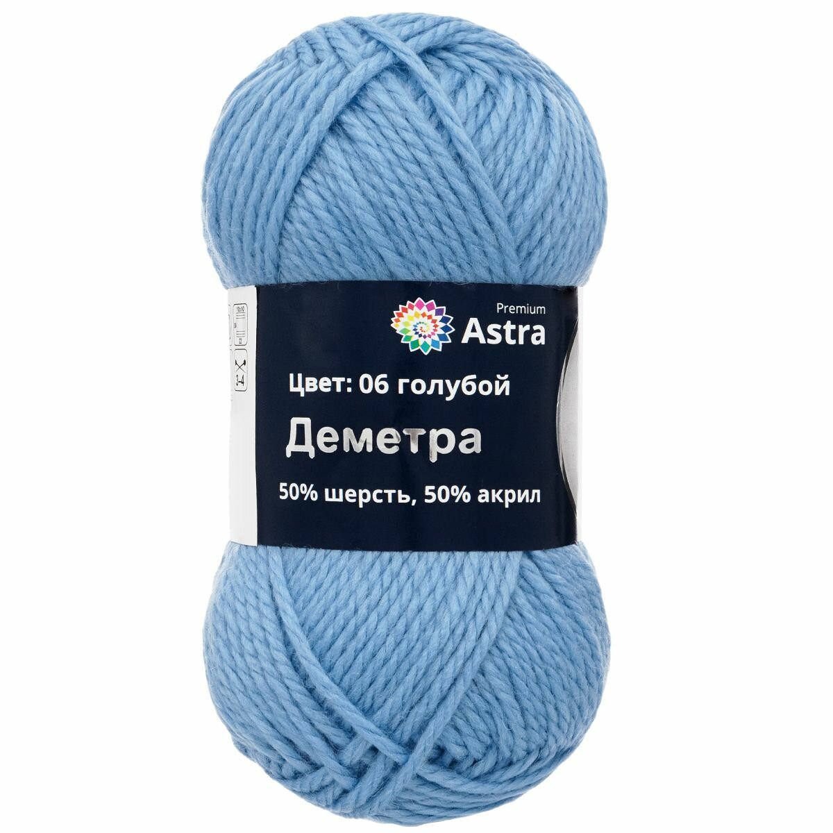Купить Пряжа для вязания Astra Premium 'Деметра' 100г, 100м (50% шерсть, 50% акрил) (06 голубой), 3 мотка