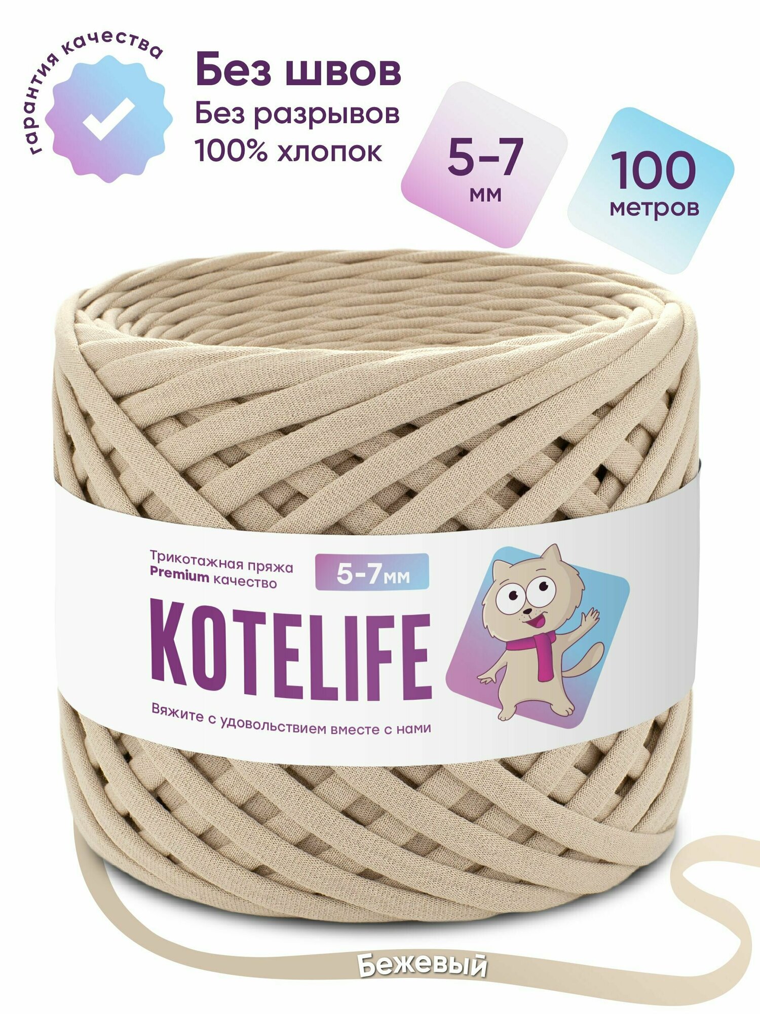 Трикотажная пряжа для вязания хлопок 100% 5-7мм бежевый интересное: