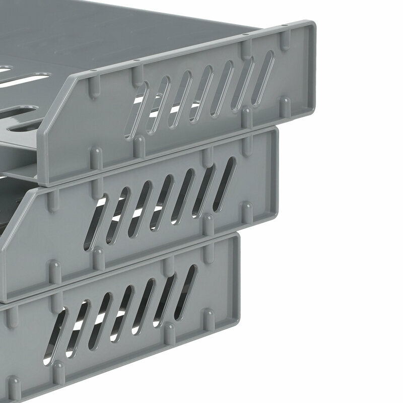 Купить Набор горизонтальных лотков для бумаг с широкой загрузкой "Сити", 3 штуки, на металлических стержнях, серый