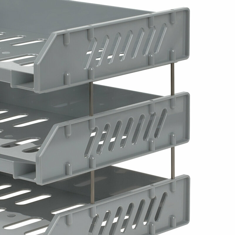 Лотки для бумаг СТАММ горизонтальные, 3 шт, "Сити", поперечные, на металлических стержнях 6 см, серые (ЛТ561)