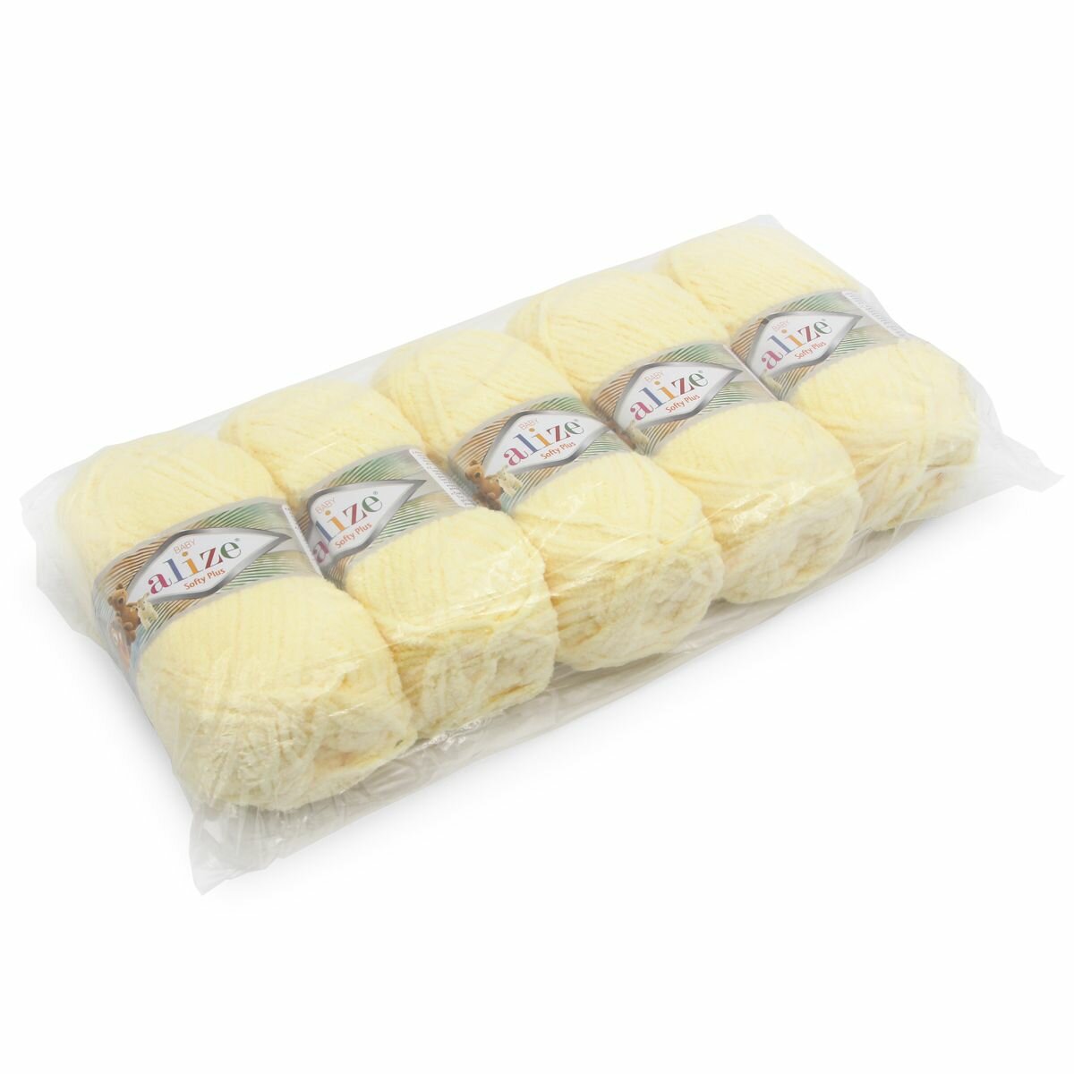 Пряжа для вязания плюшевая Alize Softy Plus, цвет 62 молочный, 100г, 120м, 5 шт/упак