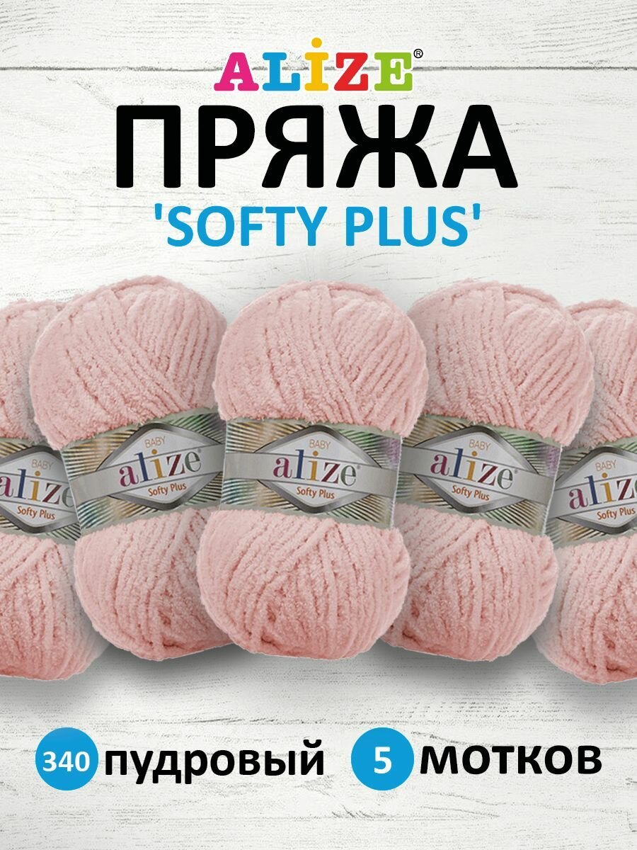 Пряжа Alize Softy Plus (340 детский розовый), 5 шт. по 100 г, Alize