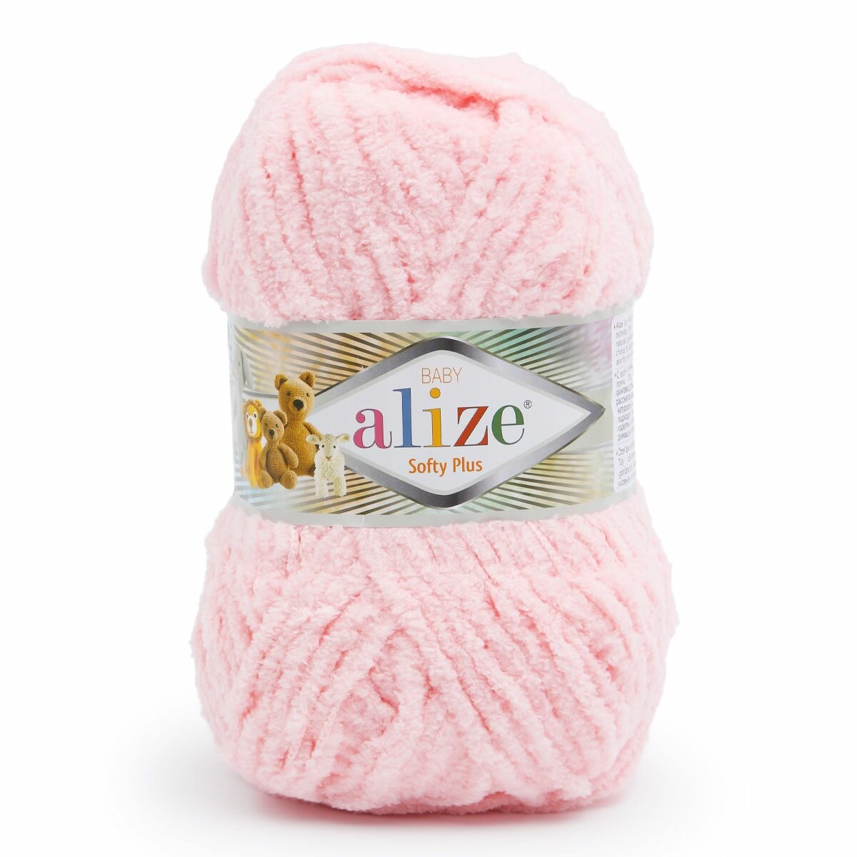 Пряжа для вязания плюшевая Alize Softy Plus, цвет 340 детский розовый, 100г, 120м, 5 шт/упак