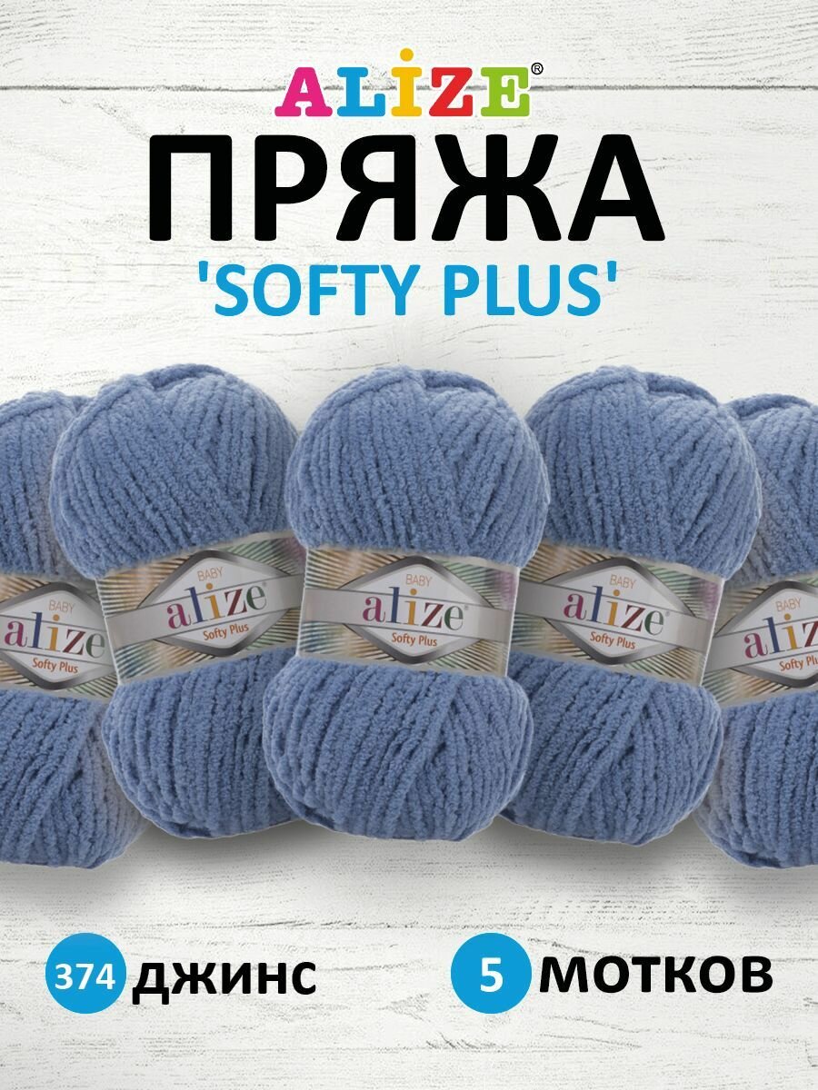 Купить Пряжа для вязания ALIZE 'Softy Plus', 100г, 120м (100% микрополиэстер) (374 джинс), 5 мотков