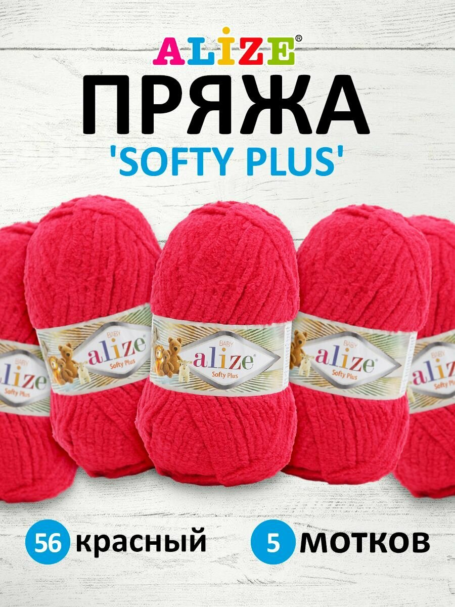 Купить Пряжа для вязания ALIZE 'Softy Plus', 100г, 120м (100% микрополиэстер) (56 красный), 5 мотков