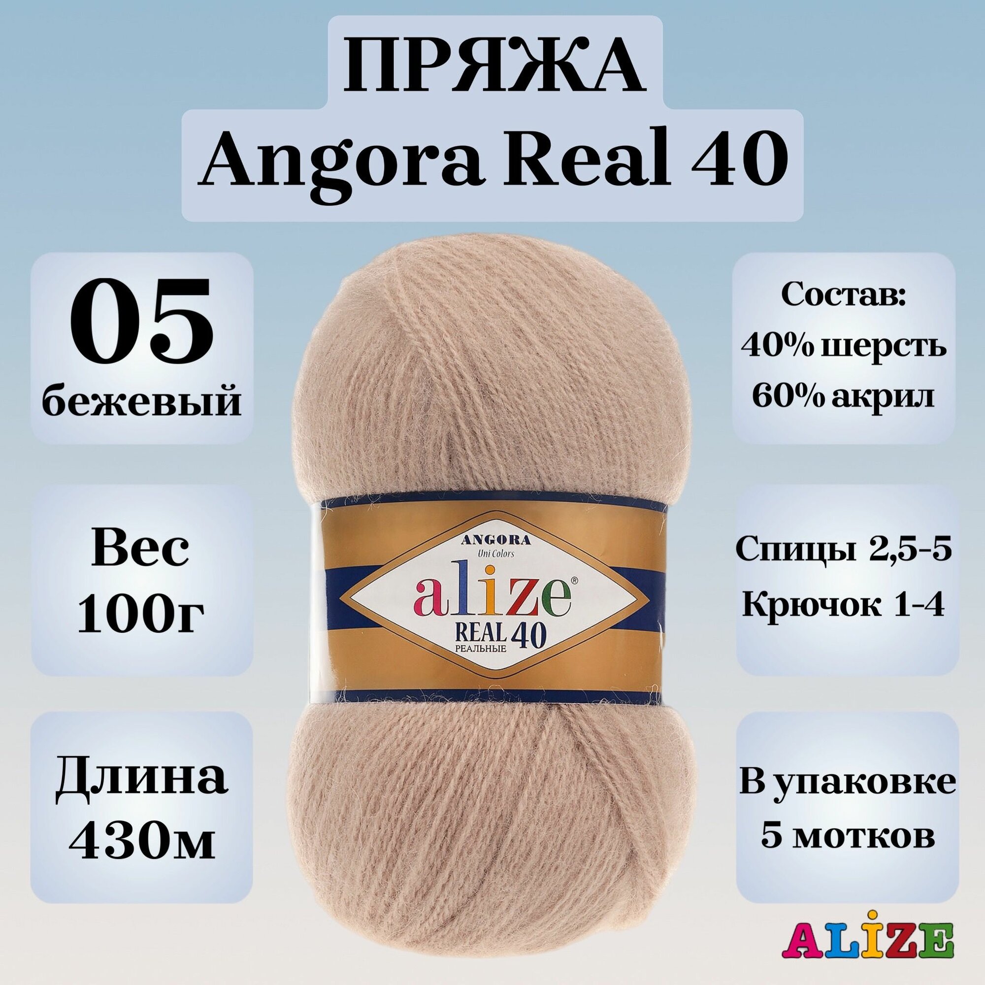 Купить Пряжа для вязания Alize Angora Real 40, цвет 05 бежевый, 100г, 430м, 5шт/упак