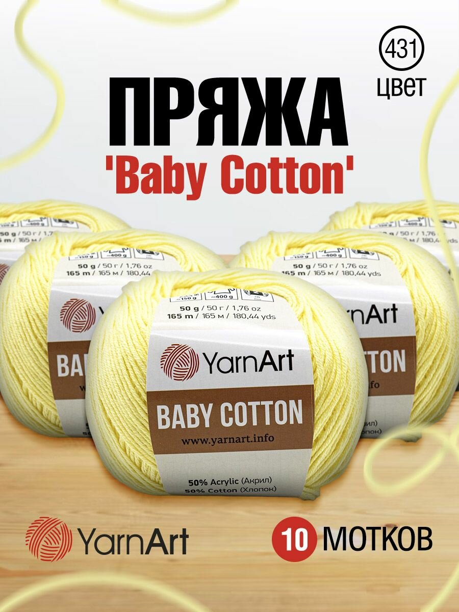 СохранитьПряжа для вязания YarnArt 'Baby Cotton' 50г, 165м (50% хлопок, 50% акрил) (431 пыльно-желтый), 10 мотков интересное:
