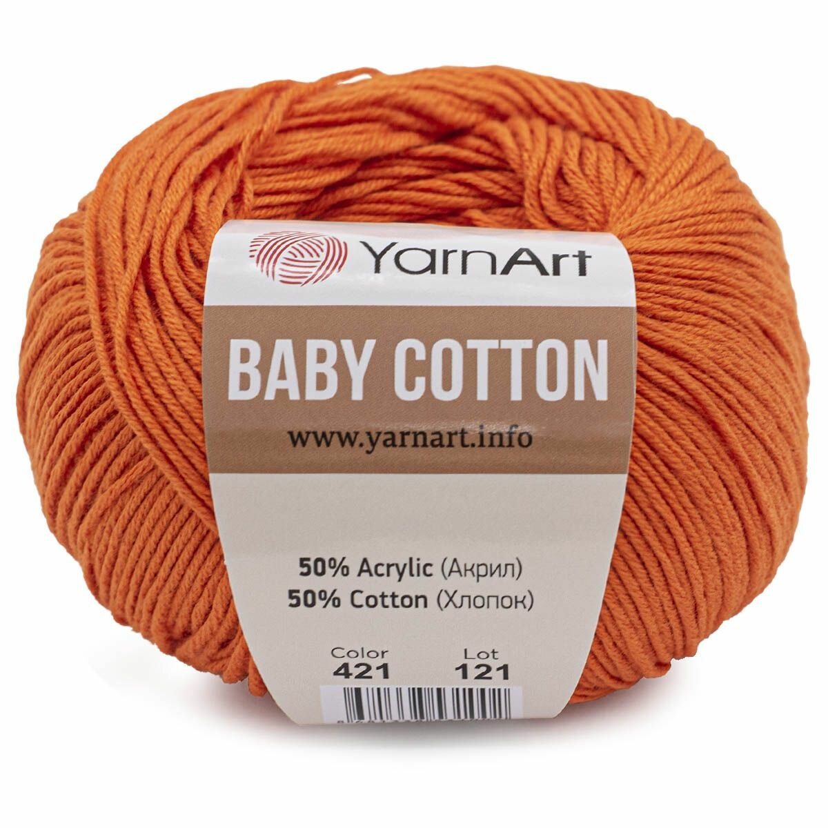 Пряжа для вязания YarnArt 'Baby Cotton' 50г, 165м (50% хлопок, 50% акрил) (429 темно-оранжевый), 10 мотков