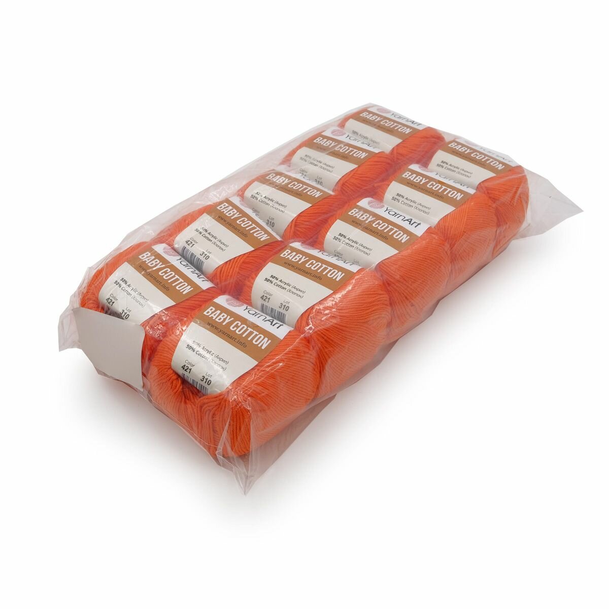 Купить Пряжа для вязания YarnArt 'Baby Cotton' 50г, 165м (50% хлопок, 50% акрил) (421 оранжевый), 10 мотков