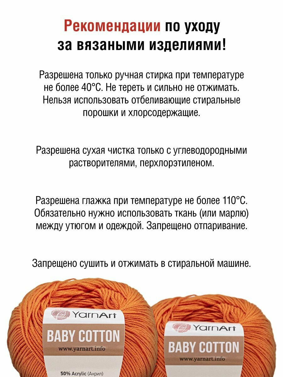 СохранитьПряжа для вязания YarnArt 'Baby Cotton' 50г, 165м (50% хлопок, 50% акрил) (421 оранжевый), 10 мотков интересное: