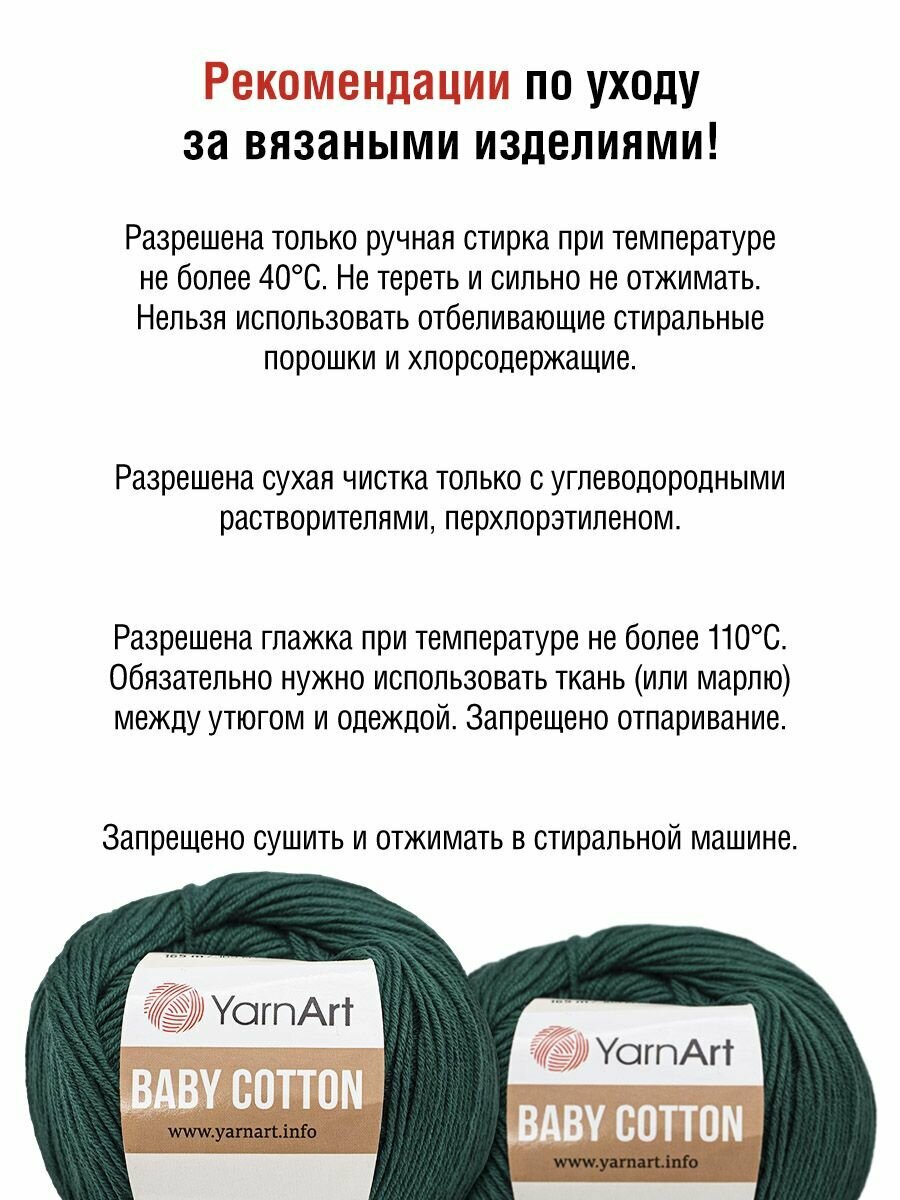 СохранитьПряжа для вязания YarnArt 'Baby Cotton' 50г, 165м (50% хлопок, 50% акрил) (444 изумрудный), 10 мотков интересное: