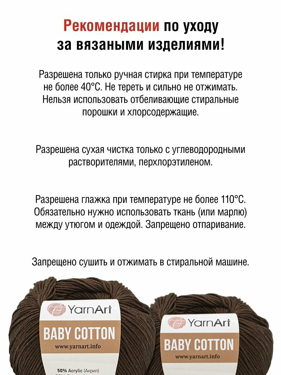СохранитьПряжа для вязания YarnArt 'Baby Cotton' 50г, 165м (50% хлопок, 50% акрил) (408 молочный шоколад), 10 мотков интересное: