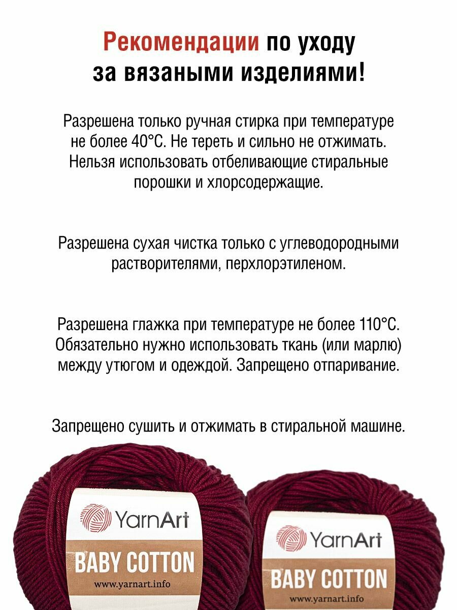 СохранитьПряжа для вязания YarnArt 'Baby Cotton' 50г, 165м (50% хлопок, 50% акрил) (428 бордо), 10 мотков интересное: