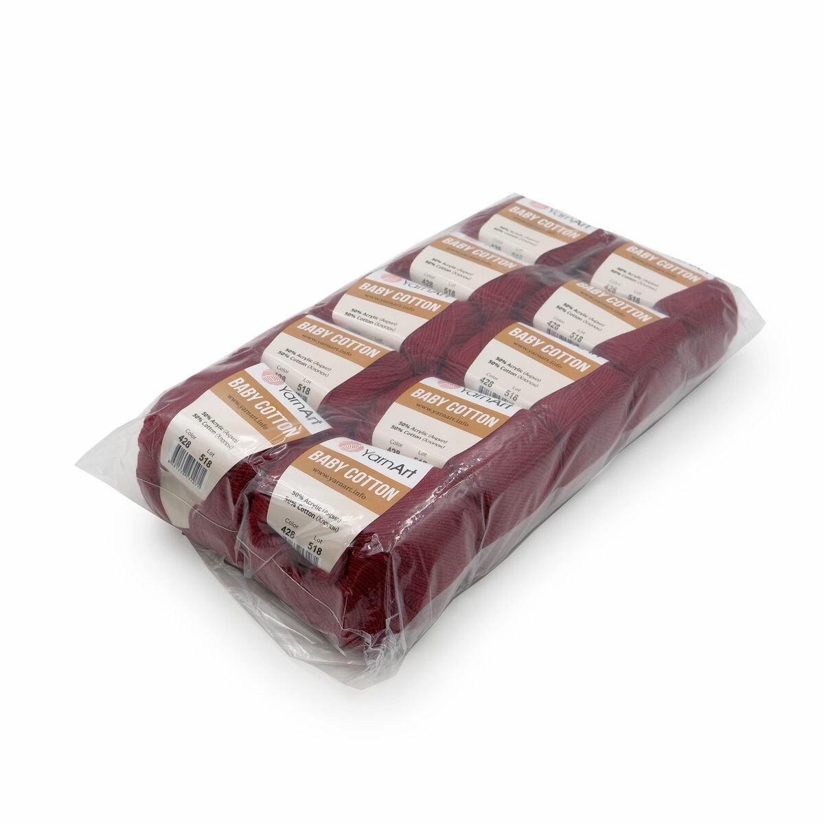 Купить Пряжа для вязания YarnArt 'Baby Cotton' 50г, 165м (50% хлопок, 50% акрил) (428 бордо), 10 мотков