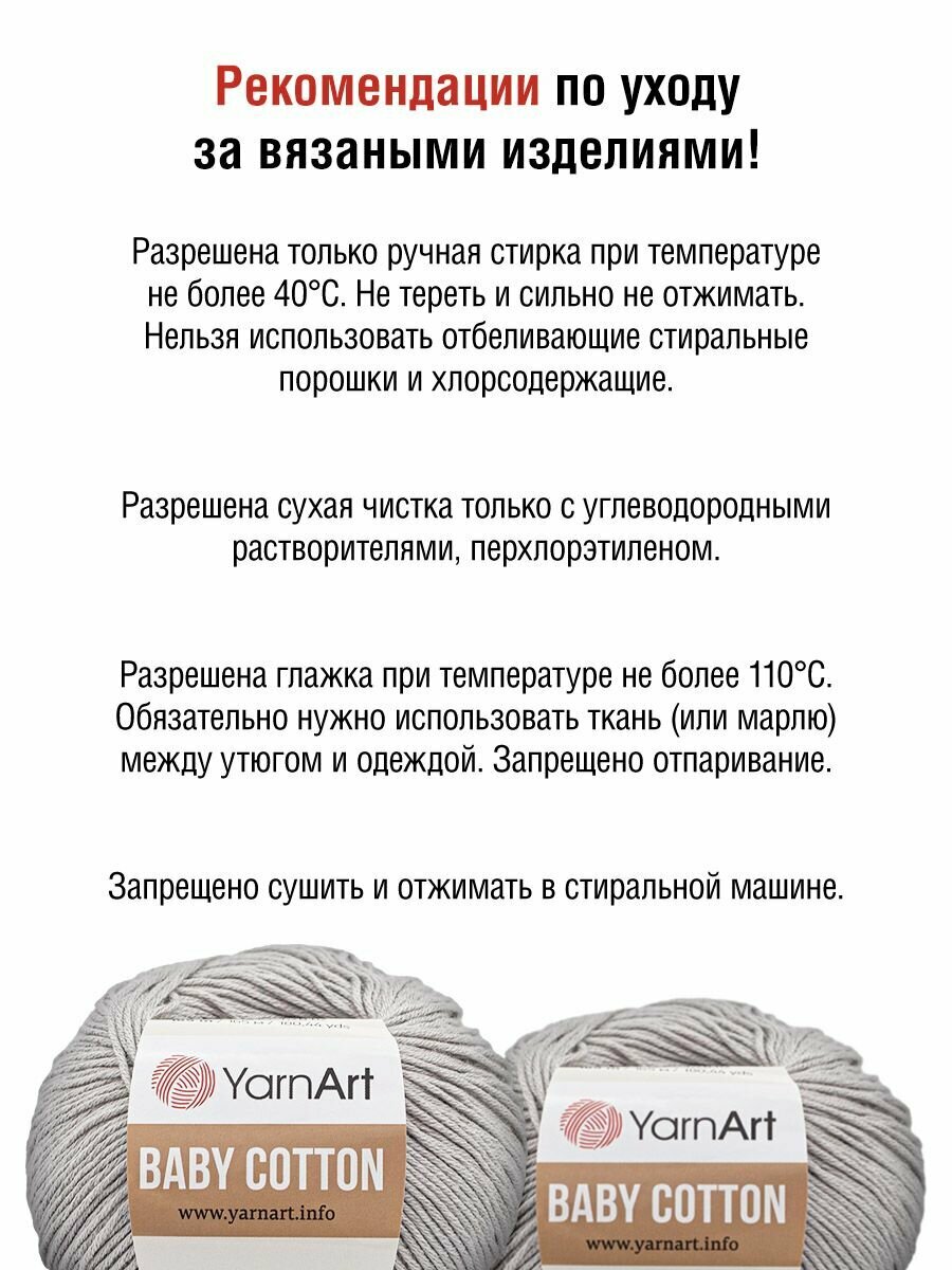 СохранитьПряжа для вязания YarnArt 'Baby Cotton' 50г, 165м (50% хлопок, 50% акрил) (406 светло-серый), 10 мотков интересное: