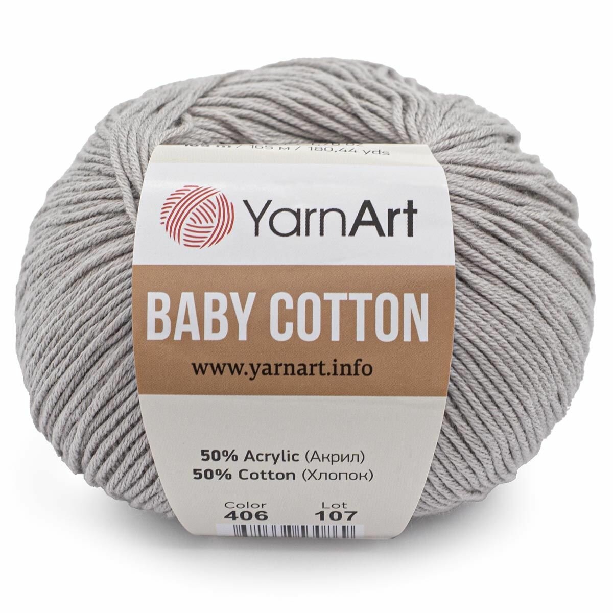 Купить Пряжа для вязания YarnArt 'Baby Cotton' 50г, 165м (50% хлопок, 50% акрил) (406 светло-серый), 10 мотков