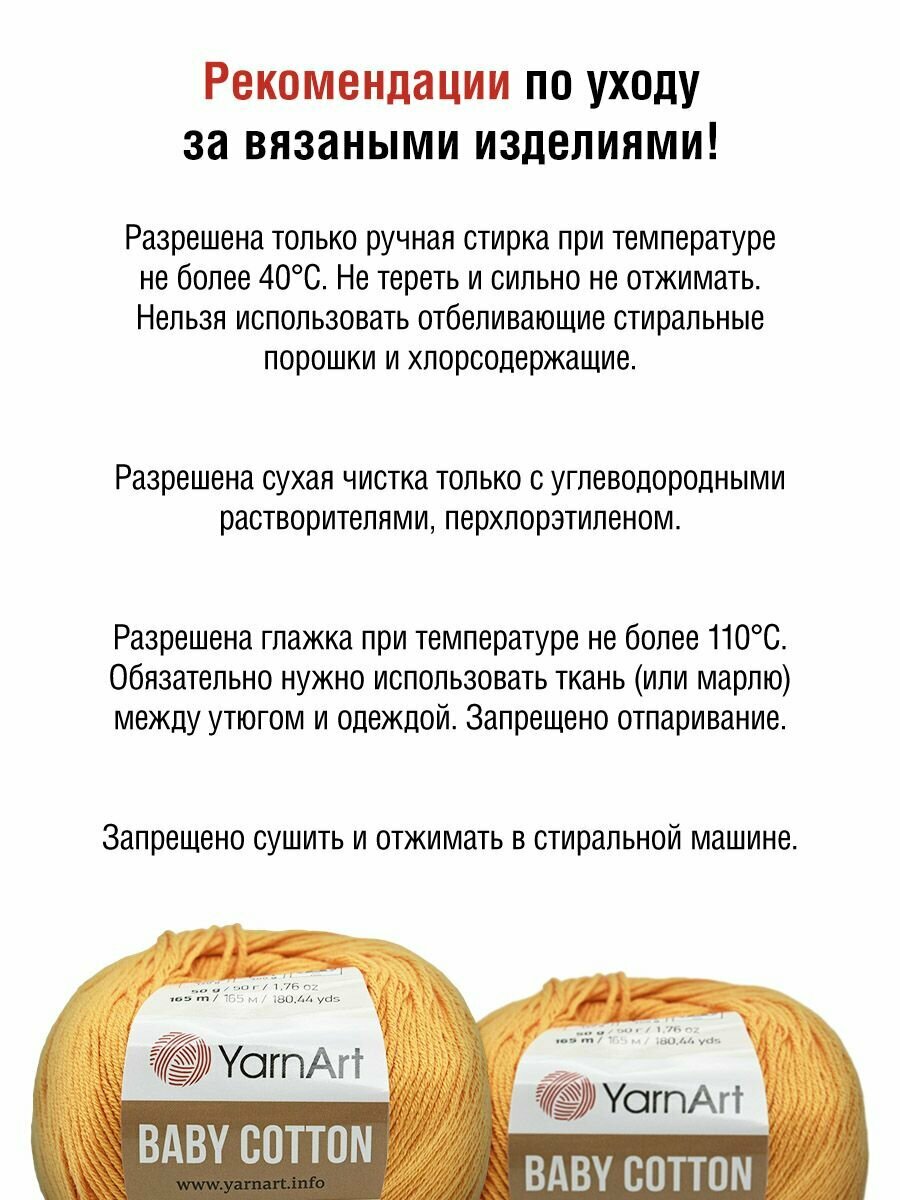 СохранитьПряжа для вязания YarnArt 'Baby Cotton' 50г, 165м (50% хлопок, 50% акрил) (425 темно-желтый), 10 мотков интересное: