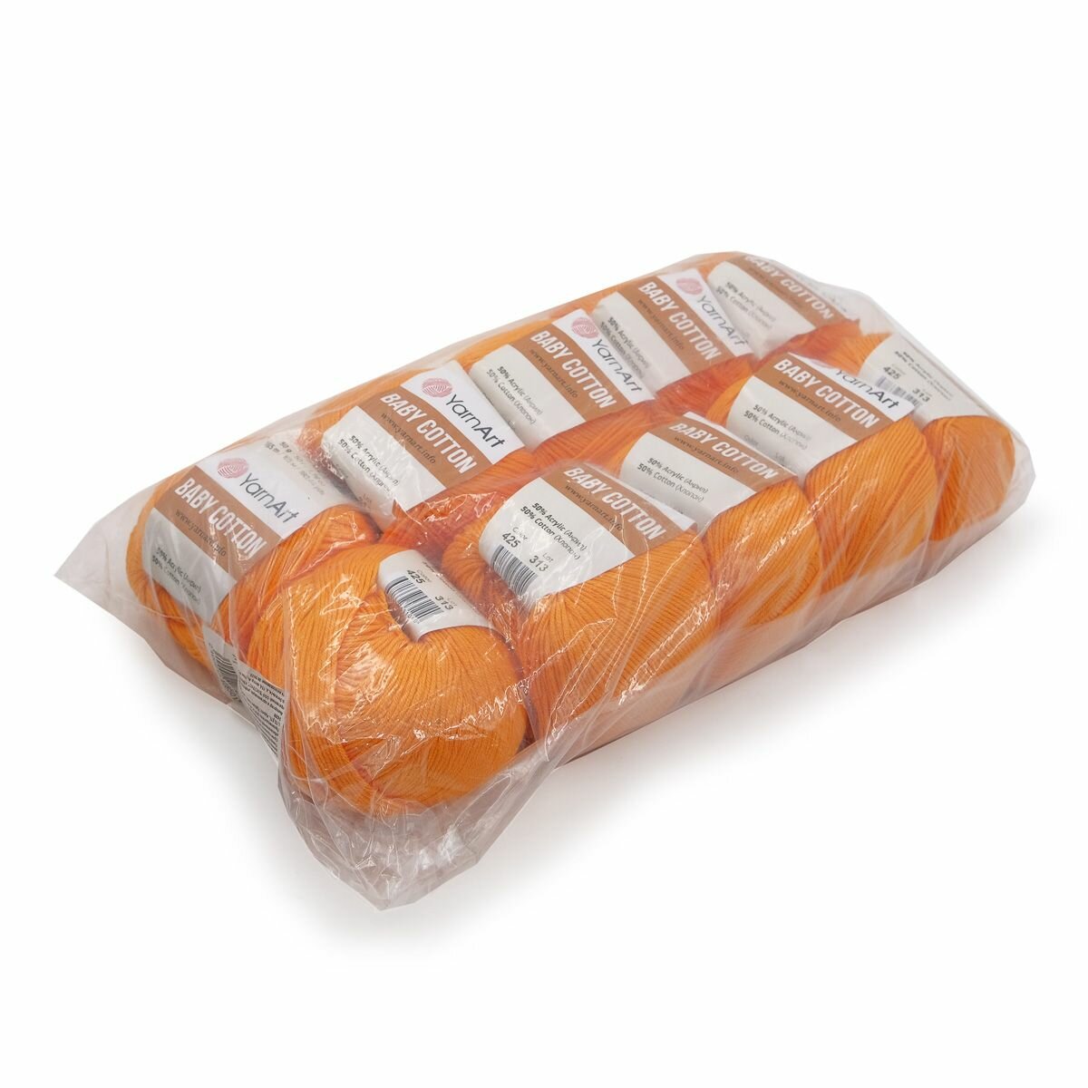 Пряжа для вязания YarnArt 'Baby Cotton' 50г, 165м (50% хлопок, 50% акрил) (421 оранжевый), 10 мотков
