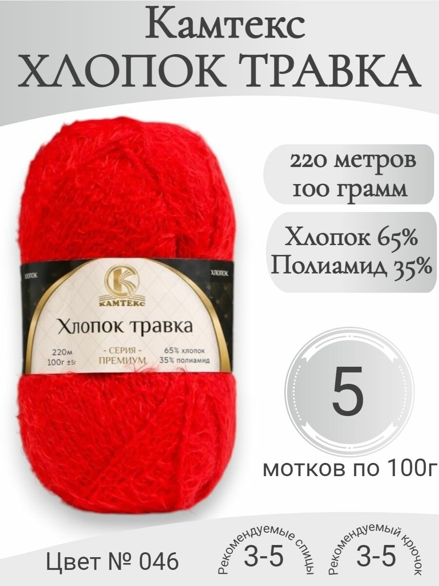 Купить Пряжа Хлопок Травка Камтекс, 046-красный (5 мот)