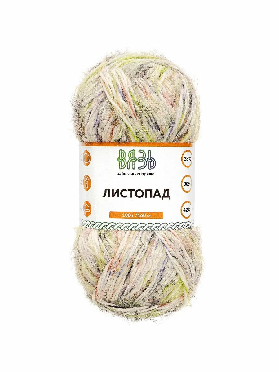 Купить Пряжа для вязания Вязь 'Листопад' 100г, 160м (28% шерсть, 30% нейлон, 42% акрил) (02 зеленый принт), 3 мотка