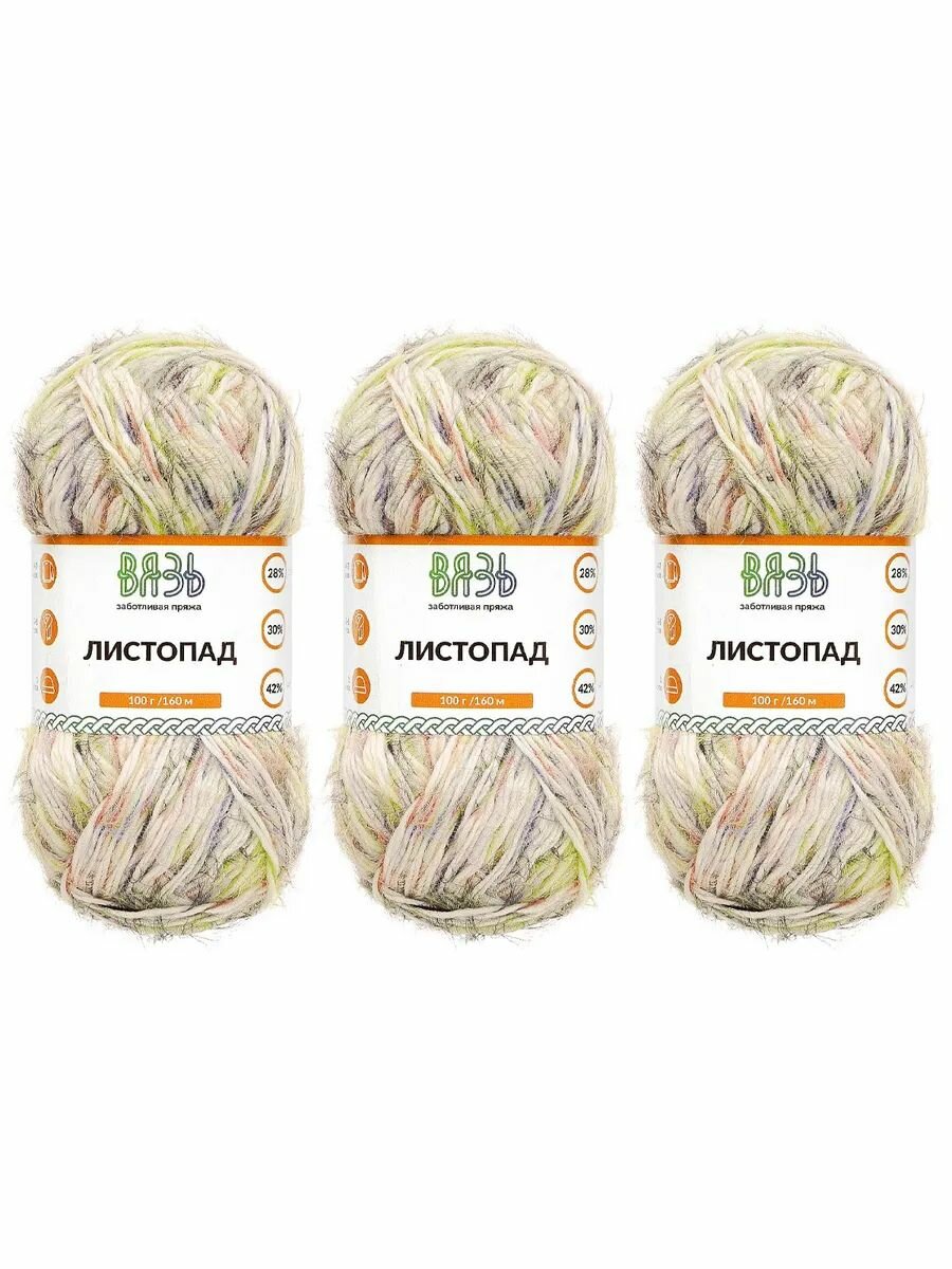 Пряжа для вязания Вязь 'Листопад' 100г, 160м (28% шерсть, 30% нейлон, 42% акрил) (02 зеленый принт), 3 мотка интересное: