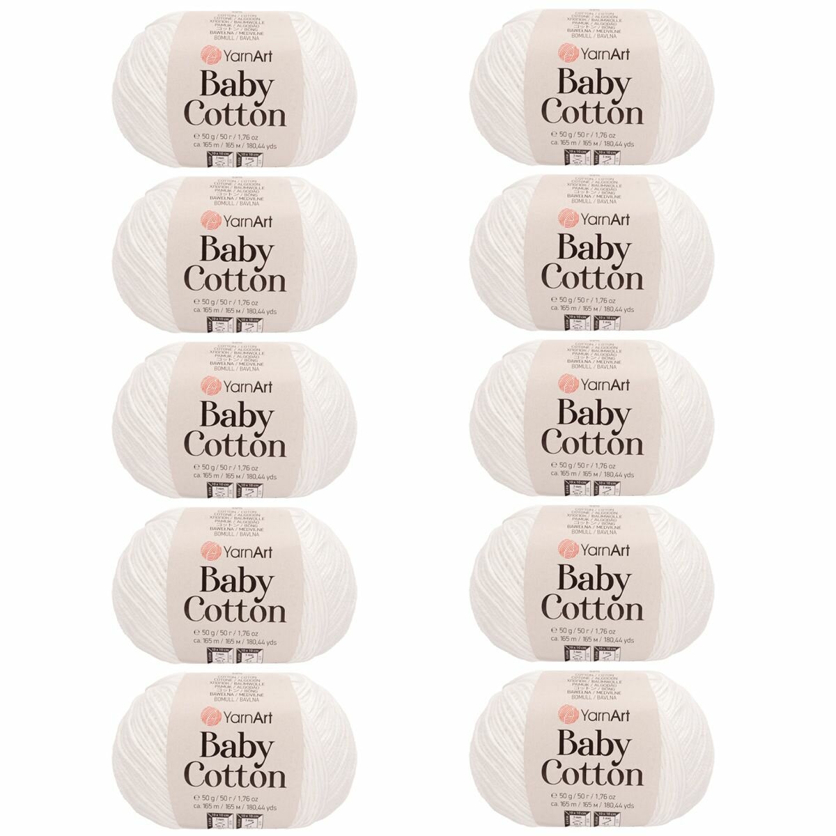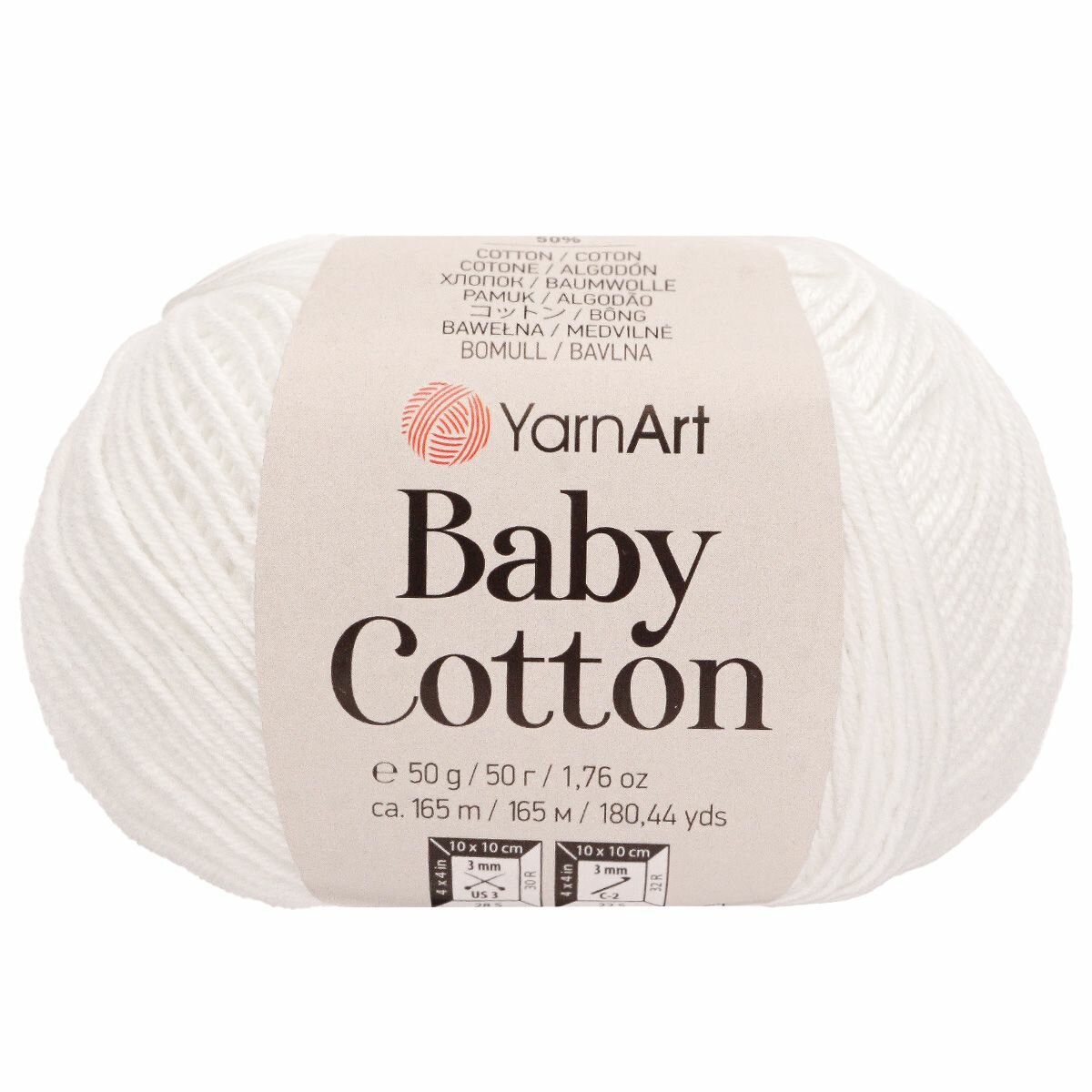 Купить Пряжа для вязания YarnArt 'Baby Cotton' 50г, 165м (50% хлопок, 50% акрил) (400 белый), 10 мотков