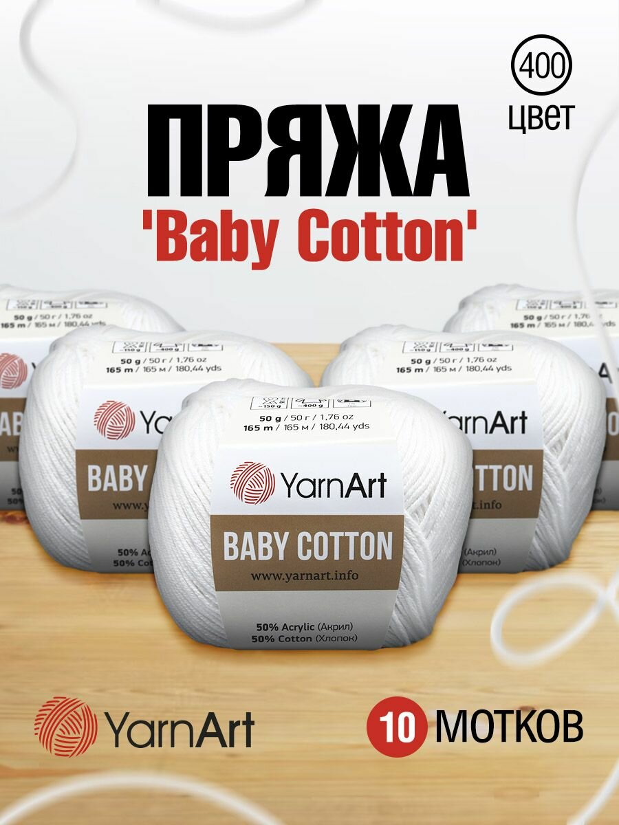 Пряжа для вязания YarnArt 'Baby Cotton' 50г, 165м (50% хлопок, 50% акрил) (400 белый), 10 мотков интересное: