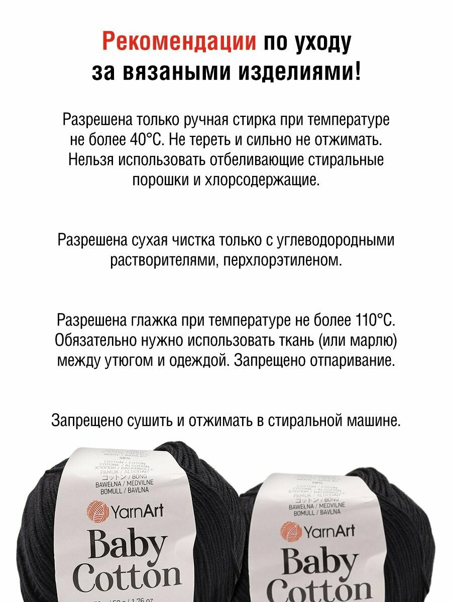 Пряжа для вязания YarnArt 'Baby Cotton' 50г, 165м (50% хлопок, 50% акрил) (460 чёрный), 10 мотков интересное: