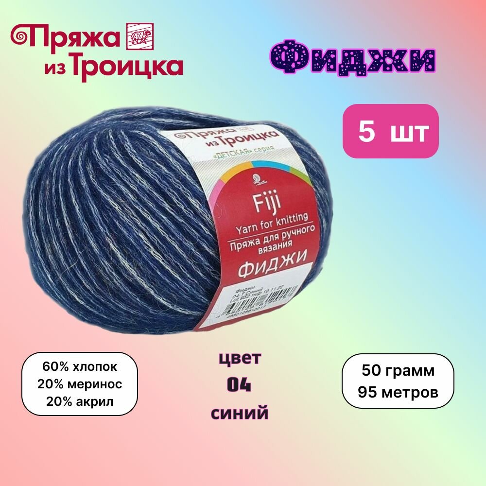 Купить Троицкая пряжа для вязания Фиджи Темно-синий (04) 5 мотков 50 г/95 м (60% хлопок, 20% мериносовая шерсть, 20% акрил) fiji