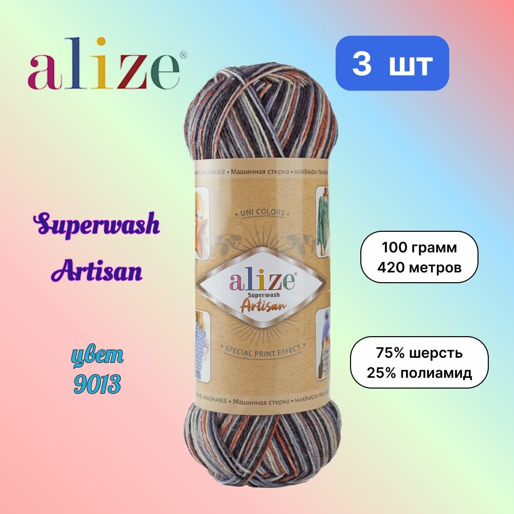 Пряжа Alize Superwash Artisan, цвет 9014, 3 мотка по 100 г/420 м (75% шерсть, 25% полиамид) ализе супервош артисан