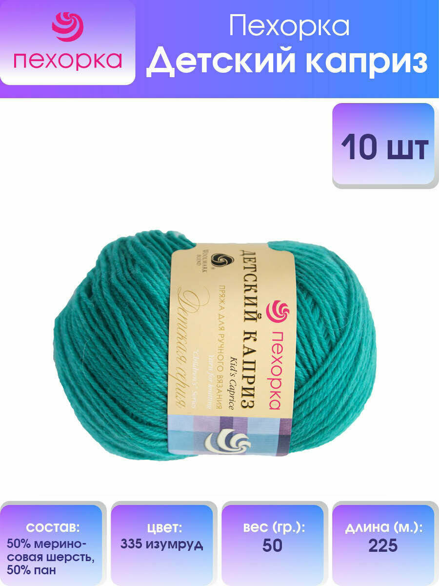 Купить Пряжа для вязания Пехорка 'Детский каприз' 50г, 225м (мериносовая шерсть, фибра) (335-Изумруд), 10 мотков