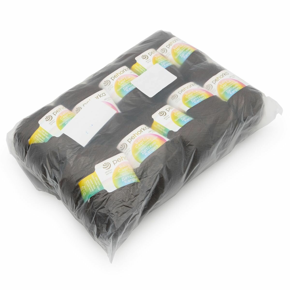Пряжа для вязания Пехорка 'Детский каприз' 50г, 225м (мериносовая шерсть, фибра) (02-Чёрный), 10 мотков