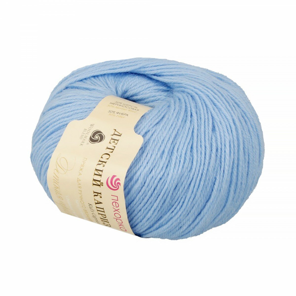 Пряжа Пехорка "Детский каприз" - 1 шт, (005-Голубой), 225м/50г, 50% мериносовая шерсть, 50% фибра