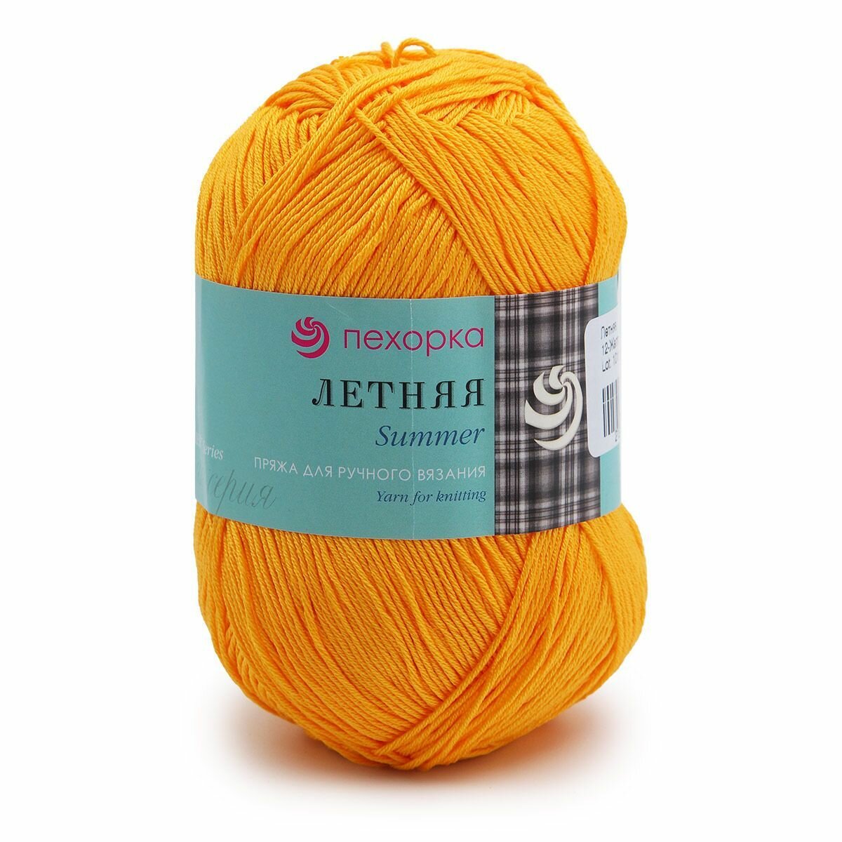 Пряжа для вязания Пехорка 'Летняя' 100г, 330м, 100% мерсеризированный хлопок (186 манго), 5 мотков