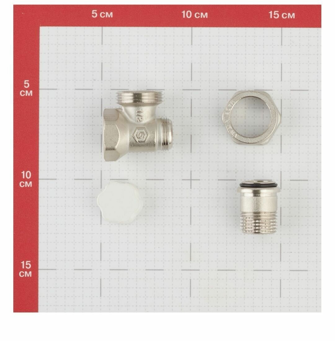 Клапан (вентиль) запорный угловой Stout (SVL-1156-000015) 1/2 НР(ш) х 1/2 ВР(г) для радиатора никелерованный